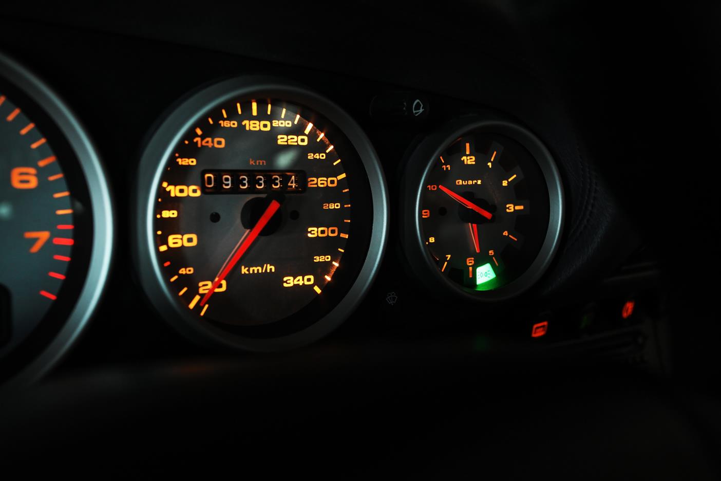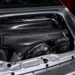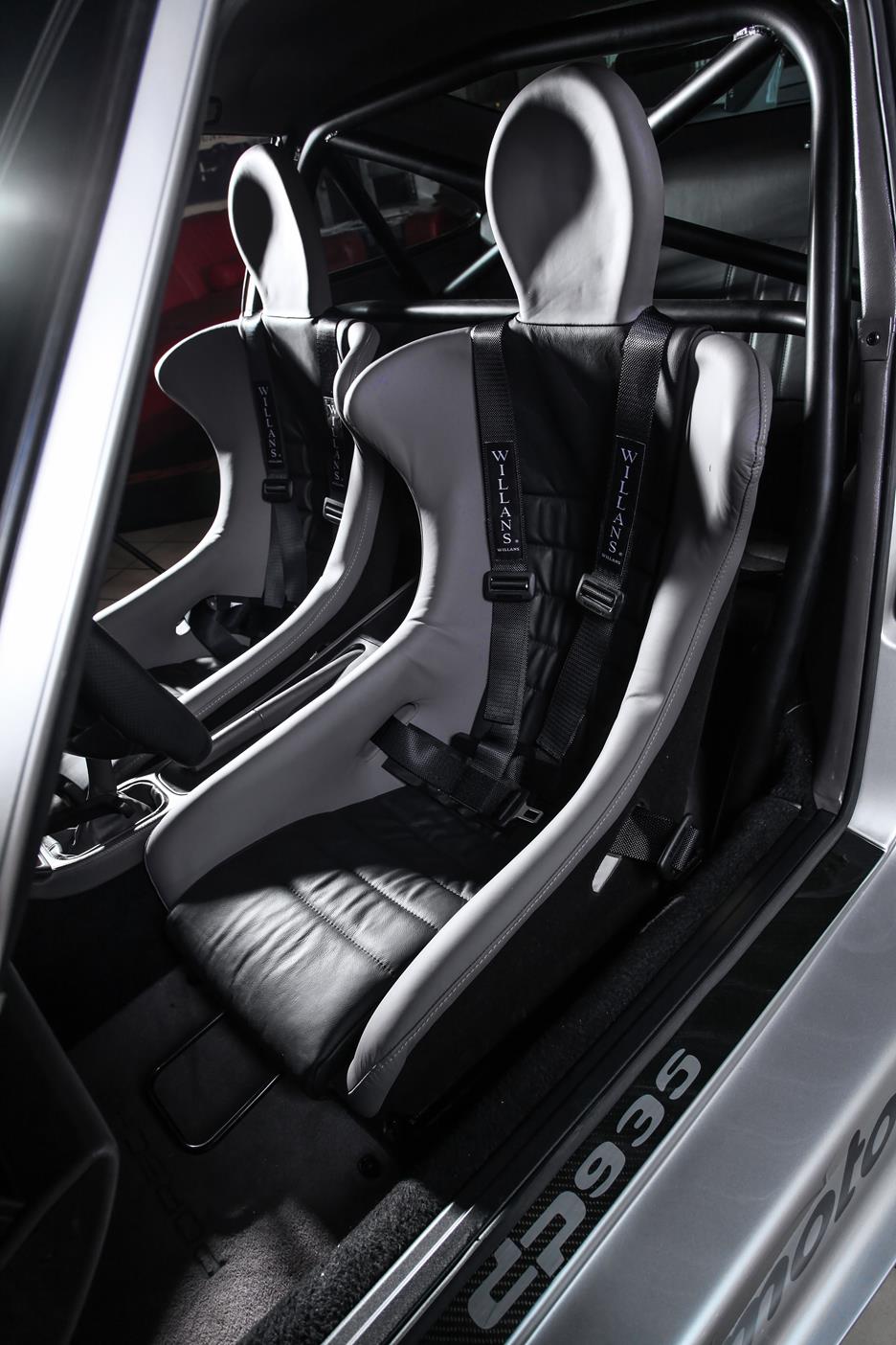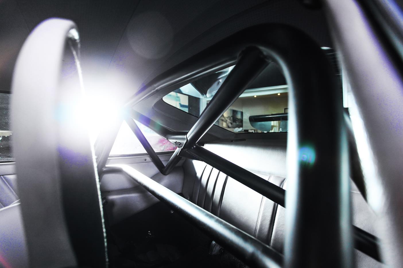 Auch das Interieur kam nicht ungeschoren davon. Dort wurde Leder in Classic-grau mit schwarz kombiniert verarbeitet. Ein Airbag-Sportlenkrad und dazu noch ein Clubsport-Überrollbügel unterstreichen die sportlichen Ambitionen von Auto und Fahrer, der – bei Bedarf nebst Beifahrer – in 935-Lollipop-Sitzen, ebenfalls in Classic-grau mit schwarz kombiniert, Platz nimmt.