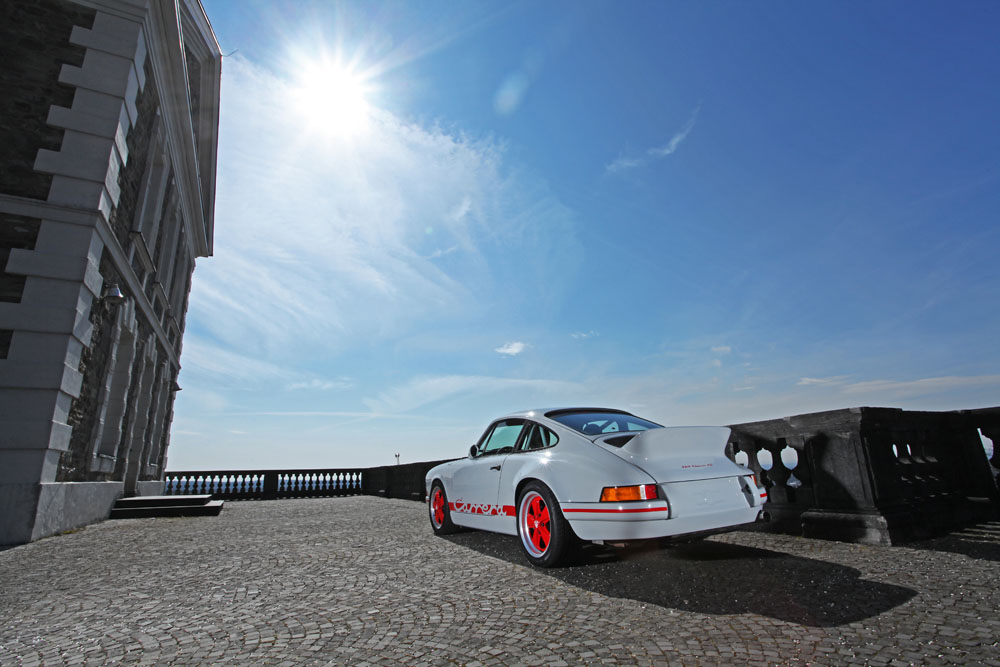 Das vorgestellte Fahrzeug kommt in Sportclassic-Grau mit dezenten Applikationen in Indisch-Rot daher. Als Basis diente ein 1993 erstmals zugelassener Porsche 964 mit einer leicht gesteigerten Leistung von 280 PS gegenüber den 250 PS der Serie. Die entscheidenden Vorteile des Umbaus gegenüber dem Original von 1973 sind zweifelsohne das modernere, bessere Fahrwerk, diverse Fahrhilfen wie ABS, Bremskraftverstärker und Servolenkung, ein Katalysator für die Umwelt, mehr Motorleistung sowie eine leichtgängigere und präzisere Schaltung und Klimaanlage. Es muss also keineswegs ein Traum bleiben, einen Ur-Elfer-Porsche mit dem Komfort und der Fahrleistung eines „aktuellen“ 964ers zu fahren.