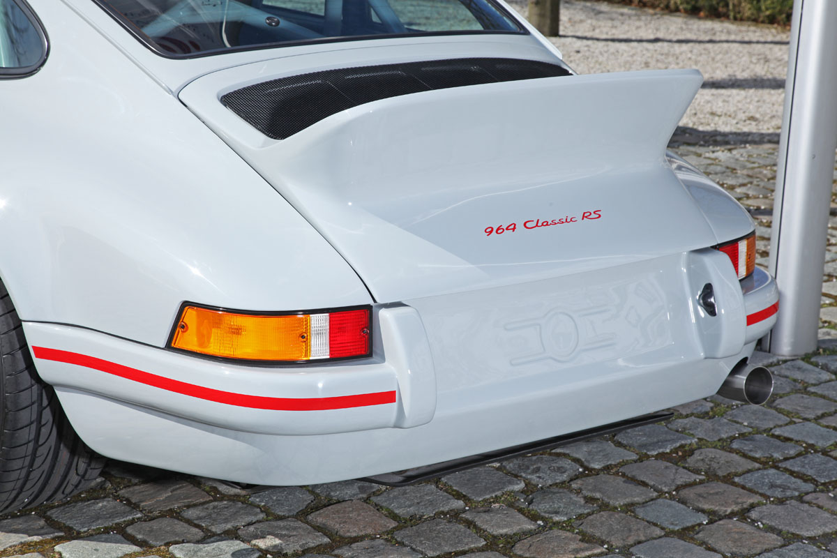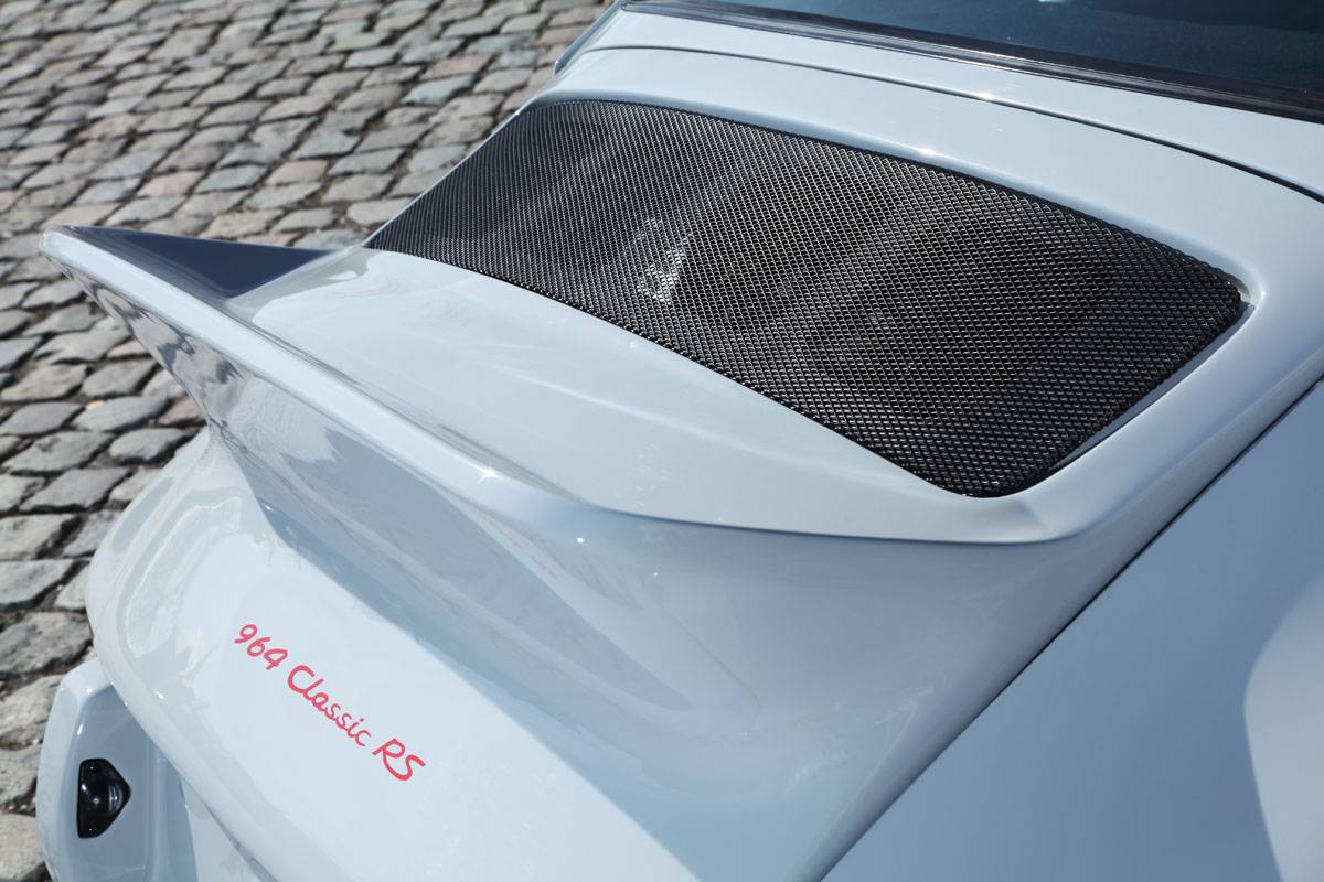 Wir bieten das Classic RS Umbaukit zu Preisen ab 6.828,- Euro (inkl. MwSt.) an. Es beinhaltet die Fronthaube und -stoßstange, Kotflügel und Seitenschweller, Heckstoßstange und -spoiler, das Horngitter und Lichtscheiben, Adapter und Haltewinkel sowie das polierte Edelstahl-Endrohr der Abgasanlage. An dieser Stelle sei zur Information erwähnt, dass auch der „breite“ 2.8 RSR Umbau für Porsche 964 erhältlich ist.
