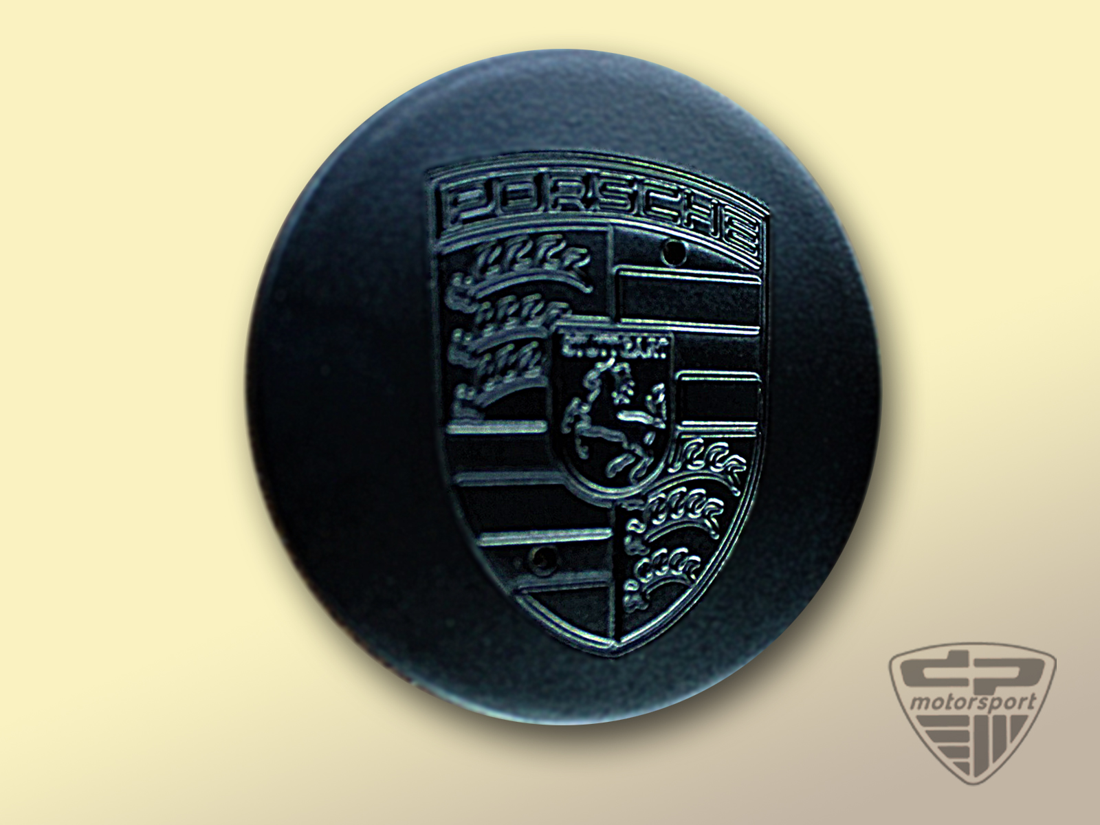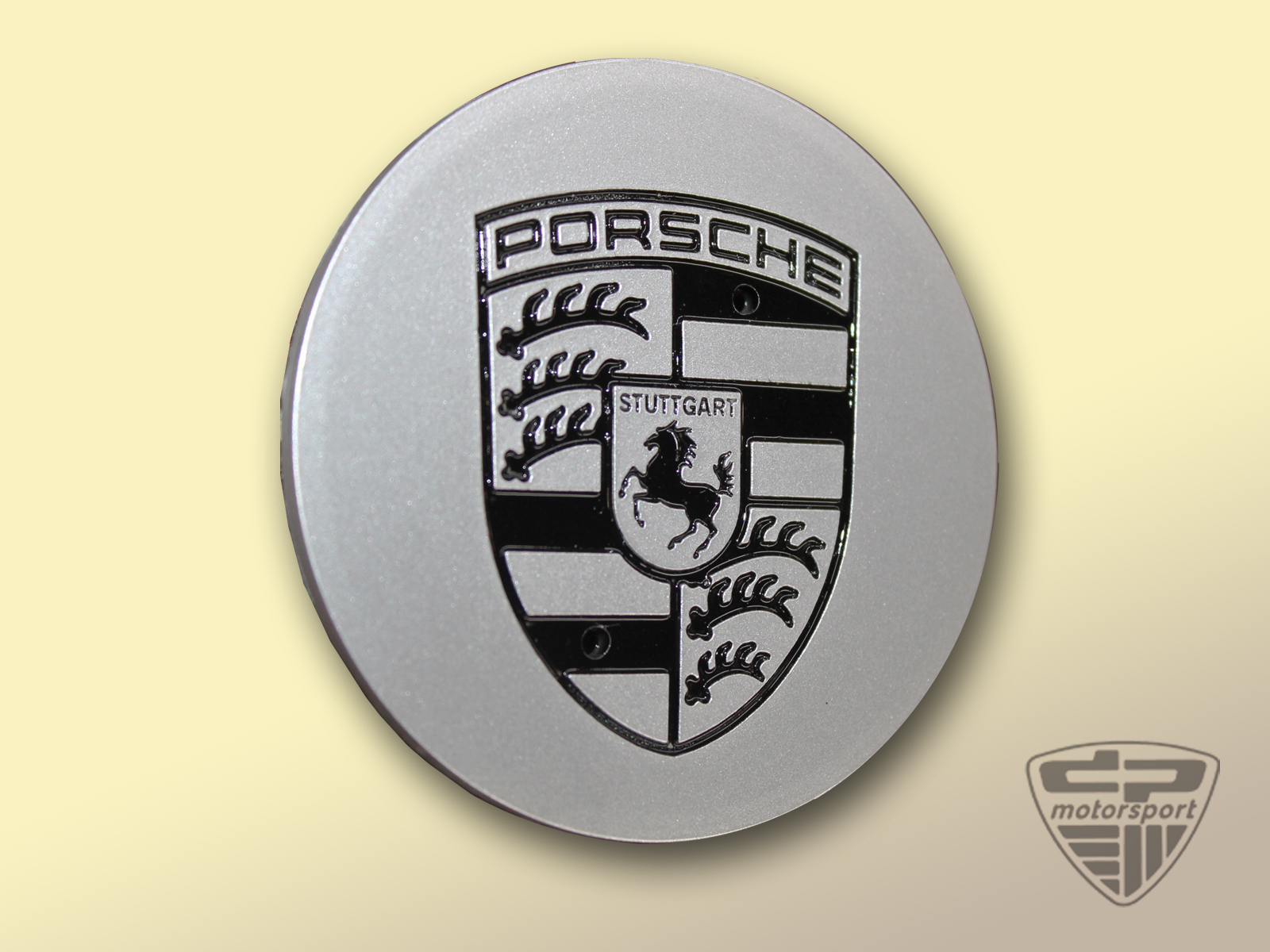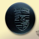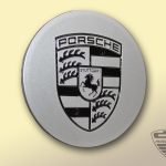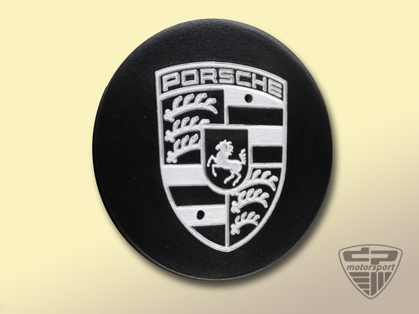 Originaler Deckel in silber mit schwarzem Porsche Wappen.