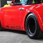Das Fahrzeug verfügt über ein H&R-Gewindefahrwerk und einstellbare dp-Stabilisatoren vom Typ RSR. Die VA-Kopflager sowie die Turbo HA-Achslenker sind Unibal-gelagert und die vorderen Achslenkerbuchsen aus PU von Superpro. Die eingeschweißte Domstrebe muss ebenso besonders erwähnt werden wie die Bremsanlage vom 911-3.3-Turbo. Bei der Rad-Reifen-Kombination sind an der Vorderachse auf Fuchs-Felgen in 9 x 15 Michelin Semislicks TB in 225/55-15 bzw. an der Hinterachse auf 13 x 15 die Dimension 335/35-15 aufgezogen.