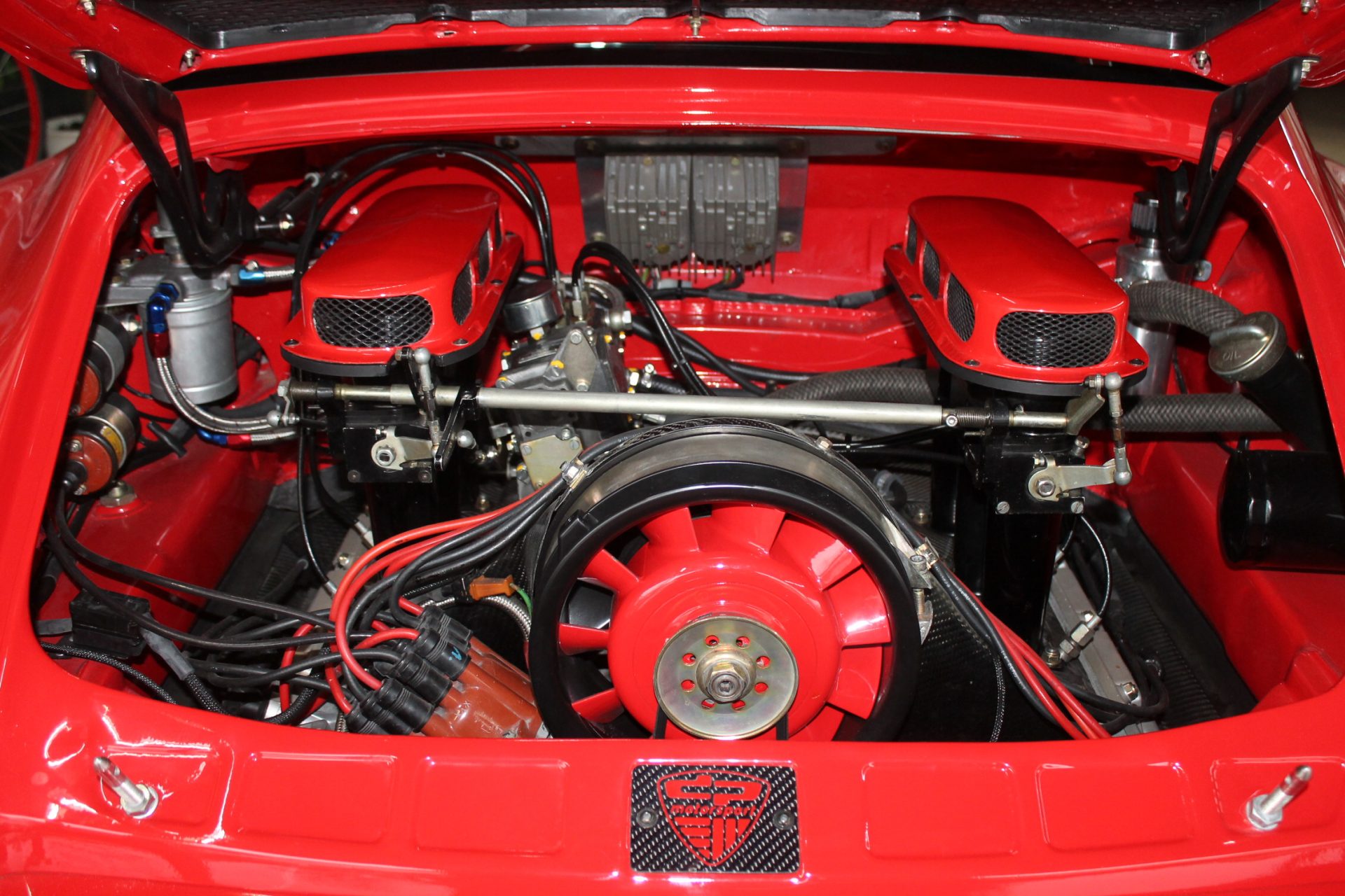 Das Triebwerk mit 3.500 cm³ Hubraum hat neben einer mechanischen Einspritzanlage mit Einzeldrosselklappen und Doppelzündanlage auch mit 911-RSR-Nockenwellen ausgestattet und bringt 374 PS bzw. 275 kW „auf die Waage“. Die mechanische Einspritzpumpe wurde von der Firma Edelweiß Motorsport auf dem Leistungsprüfstand abgestimmt.