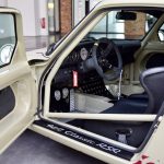 Interieur: fest eingeschweißter Überrollkäfig aus Stahlrohr-Material mit Türdiagonalen, Gurtstreben sowie Kreuz im Fond; in der Wagen-Außenfarbe „Steingrau“ auslackierter Innenraum; „Lollipop“-Profilschalensitze mit Kunstleder sowie Alcantara® bezogen; Schroth-Vierpunktgurte; Momo-Sportlenkrad; leichte Armaturenbrett-Verkleidungen sowie Knieleisten; gelochte Pedalbretter einschließlich Bodenplatten aus gelochtem Aluminium
