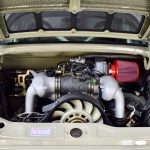 Von Hand laminiert dp Motorsport zum Beispiel die vorderen Kotflügel und auch die hinteren Seitenwände. Sie schaffen den Rahmen für umgeschweißte Fuchs-Schmiedefelgen, vorn in 9J x 15 ET 26 sowie in 11J x 15 ET 15 an der Antriebsachse. Das individuell einstellbare Gewindefahrwerk mit farbig eloxierten Domlagern liefert KW in der „Clubsport“-Variante, die auf 40 Millimeter Absenkung justiert ist. Mit Michelin „TB5“ in den Dimensionen 225/50 R 15 vorn sowie 285/40 R 15 hinten wäre sogar die offizielle Teilnahme an Sportveranstaltungen möglich. Der Saugmotor mit einer Hubraum-Erweiterung auf 3,8 Liter leistet 320 PS bei 380 Newtonmetern maximalem Drehmoment. Die aus Edelstahl-Rohrmaterial gefertigte Auspuffanlage mit Fächerkrümmern und zwei Metall-Katalysatoren trägt zur Leistungssteigerung um 70 PS gegenüber der Serienausführung bei. Das Interieur wird durch den eingeschweißten Überrollschutz aus Stahlrohr, zwei charakteristische „Lollipop“-Profilschalensitze sowie das Auslackieren in der neuen Wagen-Außenfarbe „Steingrau“ bestimmt. Der nach oben versetzte Schalthebel des 993 GT2 bedient ein revidiertes Fünfgang-Schaltgetriebe des Typs G50 mit Sperrdifferenzial.