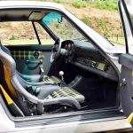 Interieur: Designkonzept in Leder schwarz mit schwarz/gelb/grünem Karostoff; Recaro-Profilschalensitze Typ „Pole Position“; Clubsport-Überrollbügel dp Motorsport; Momo-Lenkrad Typ M07; RS-Veloursteppich; Sichtkarbon-Blenden; teilweise versteckte Soundanlage; elektrische Klimaanlage nachgerüstet; „Liteblox“-Batterie im Gepäckraum